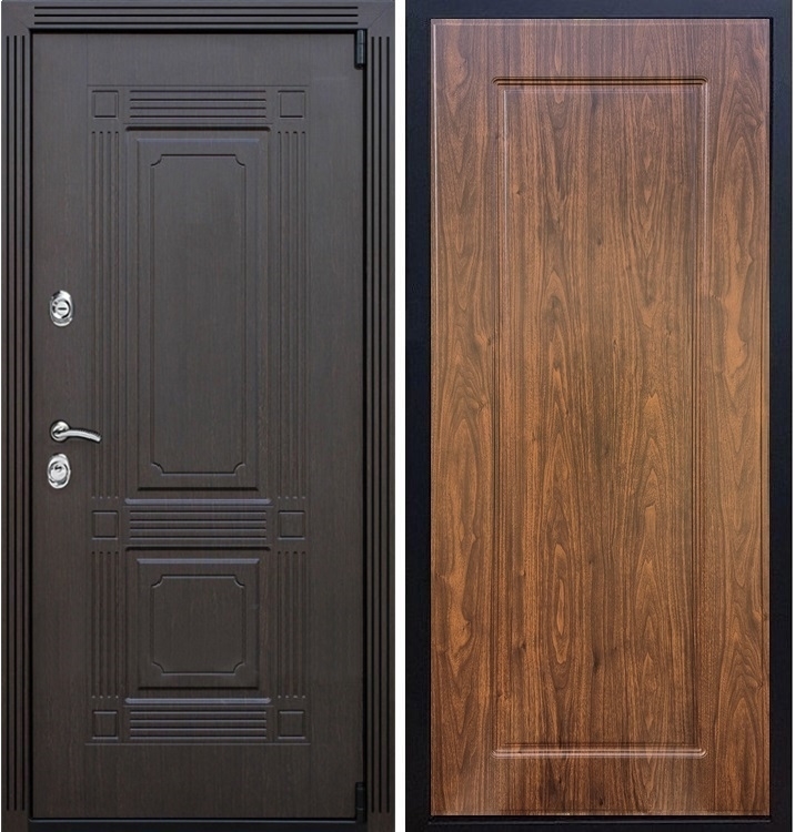 В комплект двери входит - Полотно + короб, декоративная панель с двух сторон, 2 - замка, личинка, ручки, декоративные накладки
