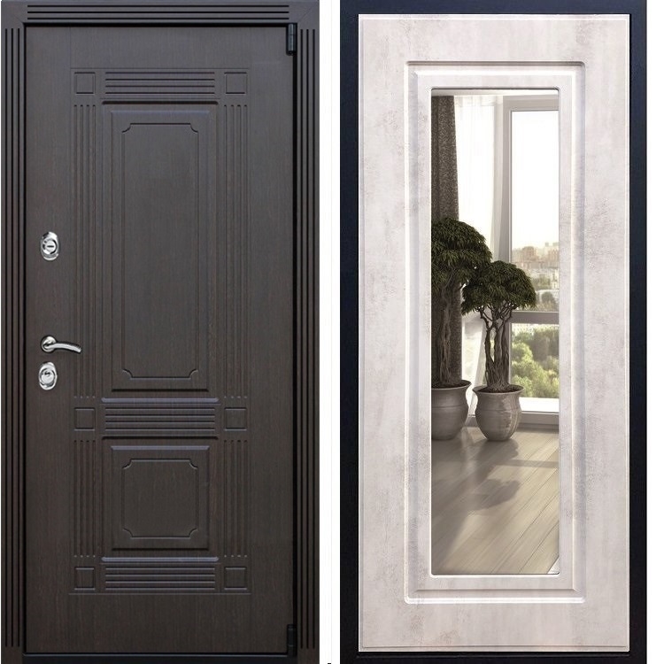 Входная стальная дверь ESTET ФЛ-120 с Зеркалом Бетон светлый