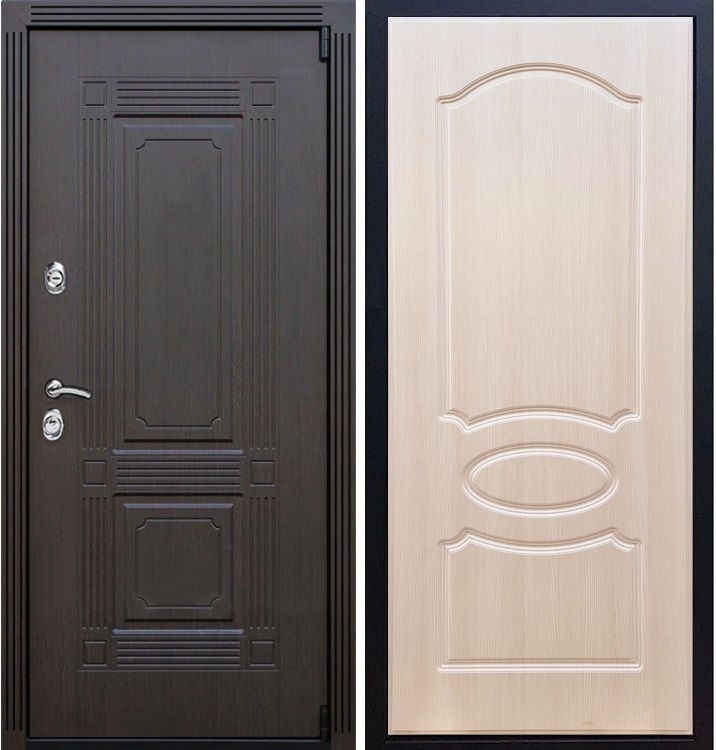 В комплект двери входит - Полотно + короб, декоративная панель с двух сторон, 2 - замка, личинка, ручки, декоративные накладки