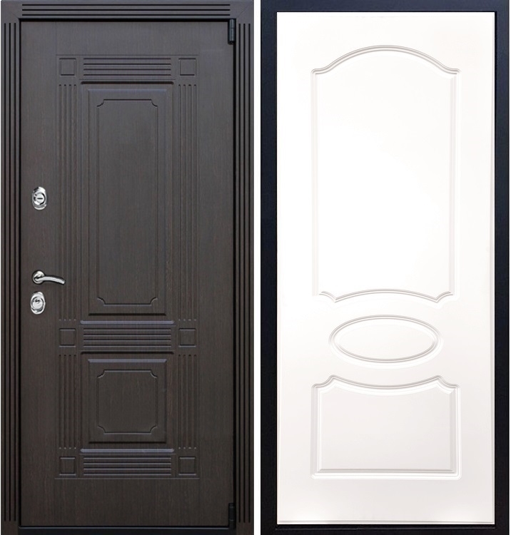 В комплект двери входит - Полотно + короб, декоративная панель с двух сторон, 2 - замка, личинка, ручки, декоративные накладки