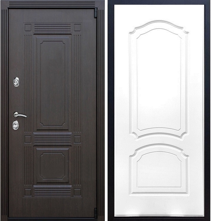 В комплект двери входит - Полотно + короб, декоративная панель с двух сторон, 2 - замка, личинка, ручки, декоративные накладки