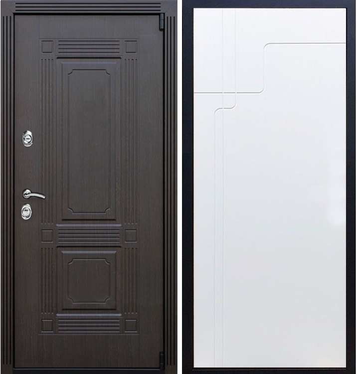 В комплект двери входит - Полотно + короб, декоративная панель с двух сторон, 2 - замка, личинка, ручки, декоративные накладки