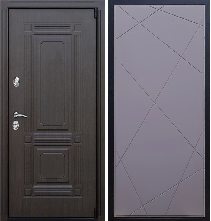В комплект двери входит - Полотно + короб, декоративная панель с двух сторон, 2 - замка, личинка, ручки, декоративные накладки