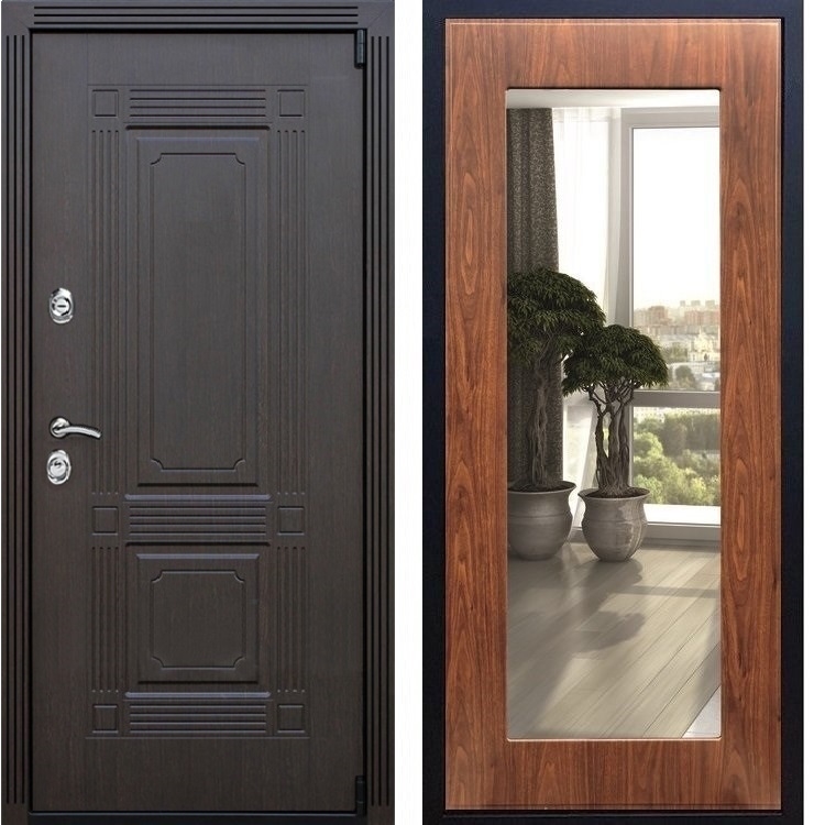 Входная стальная дверь ESTET Пастораль Берёза морёная с Зеркалом
