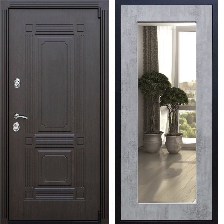 Входная стальная дверь ESTET Пастораль Бетон тёмный с Зеркалом