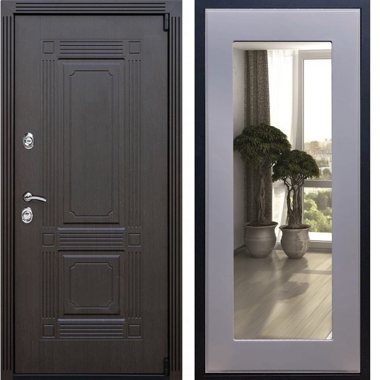 Входная стальная дверь ESTET Пастораль Силк титан с Зеркалом