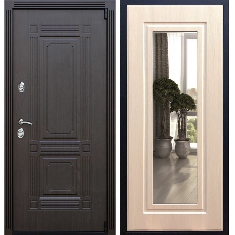 Входная стальная дверь ESTET с Зеркалом Беленый дуб