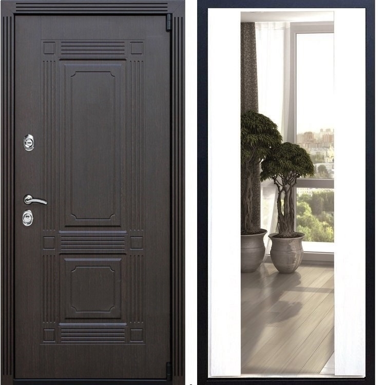 Входная стальная дверь ESTET с Зеркалом СБ -16 Белый силк сноу