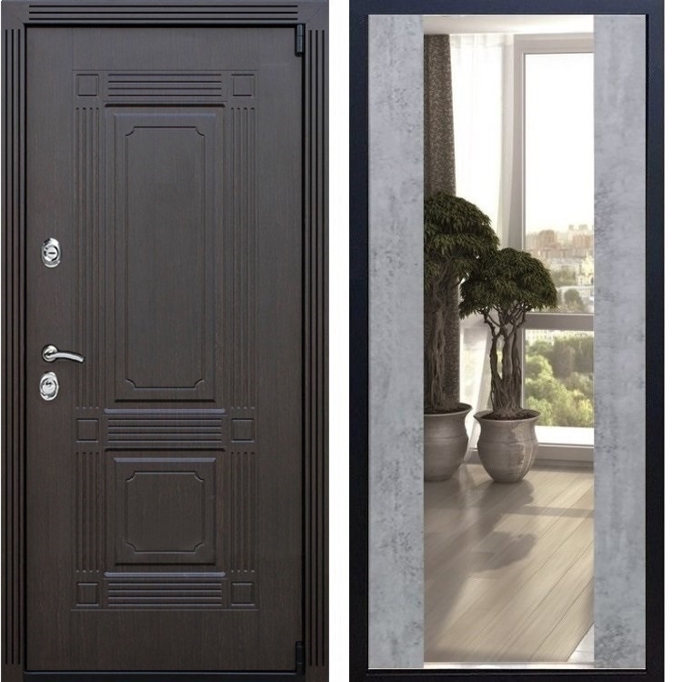 Входная стальная дверь ESTET с Зеркалом СБ -16 Бетон темный