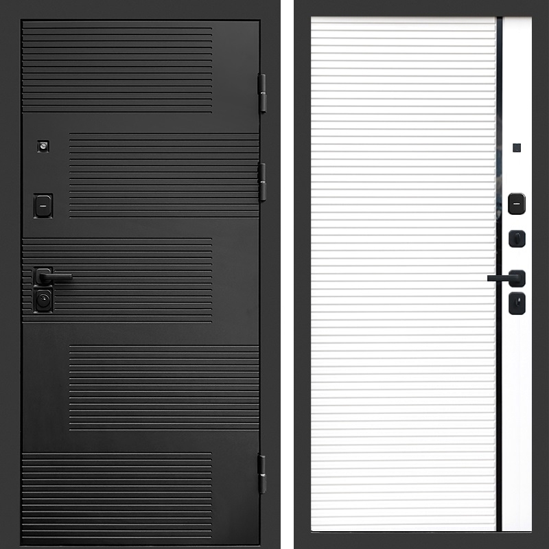 Входная стальная дверь Фаворит фл-248 Белый матовый, черная вставка