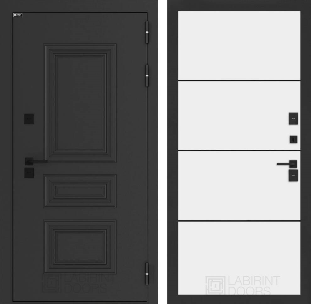 Входные двери Аляска лайт с терморазрывом 25 - Белый софт, черный молдинг