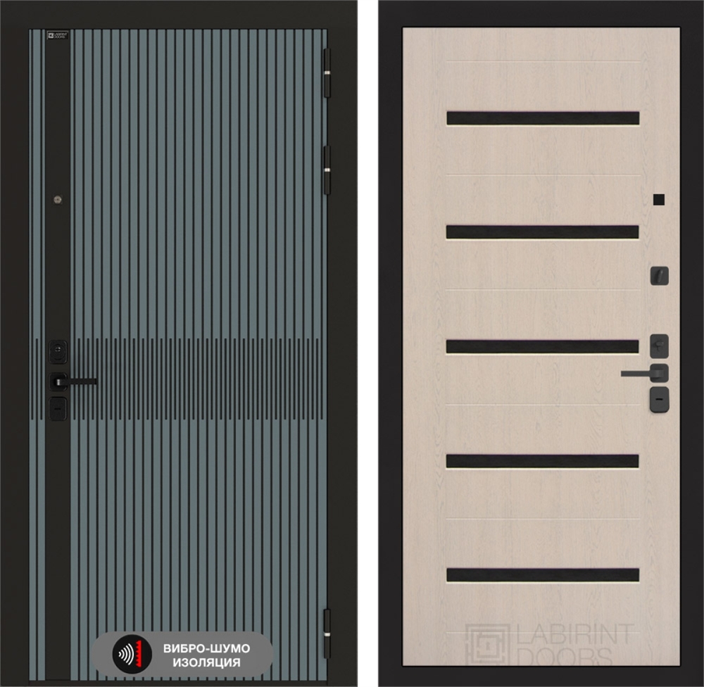 Входная стальная дверь Лабиринт ISSIDA 01 - Беленый дуб, стекло черное