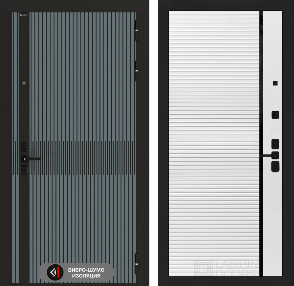 Входная стальная дверь Лабиринт ISSIDA 22 - Белый софт, черная вставка