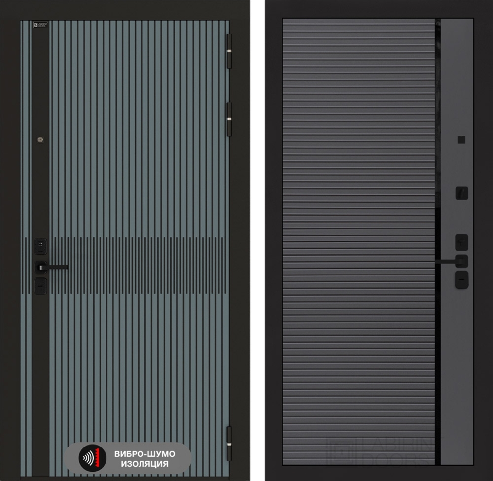 Входная стальная дверь Лабиринт ISSIDA 22 - Графит софт, черная вставка