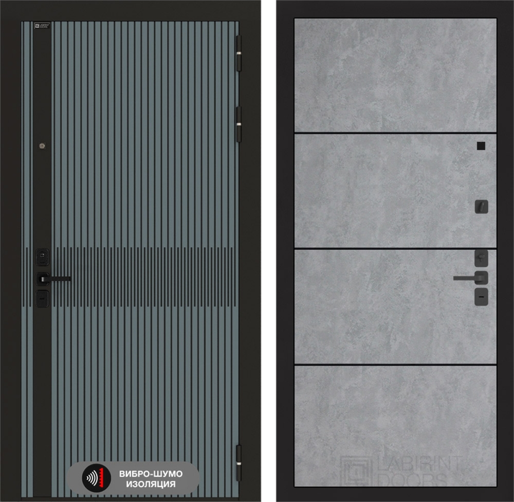 Входная стальная дверь Лабиринт ISSIDA 25 - Бетон светлый, черный молдинг