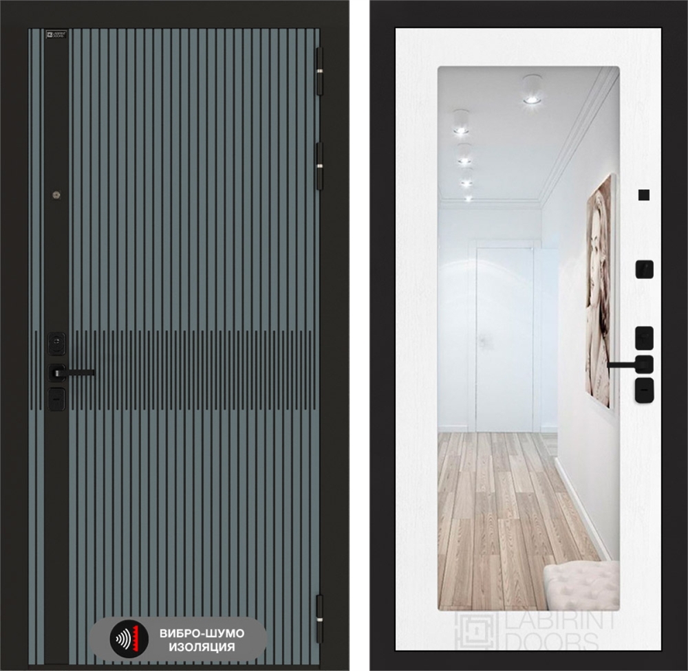 Входная стальная дверь Лабиринт ISSIDA с Зеркалом 18 - Белое дерево