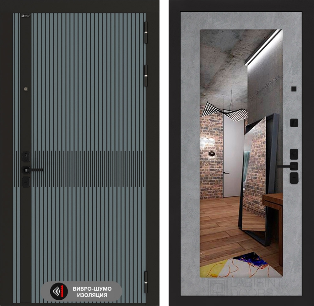 Входная стальная дверь Лабиринт ISSIDA с Зеркалом 18 - Бетон светлый