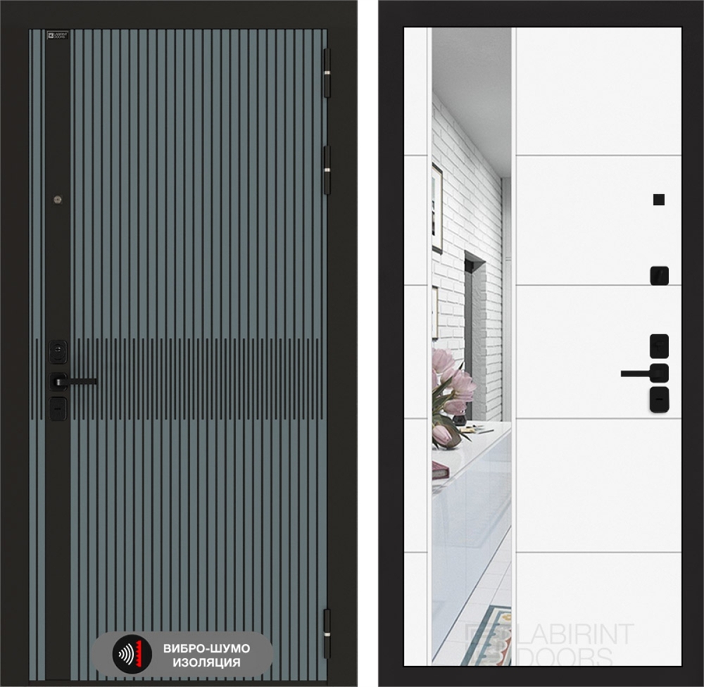 Входная стальная дверь Лабиринт ISSIDA с Зеркалом 19 - Белый софт