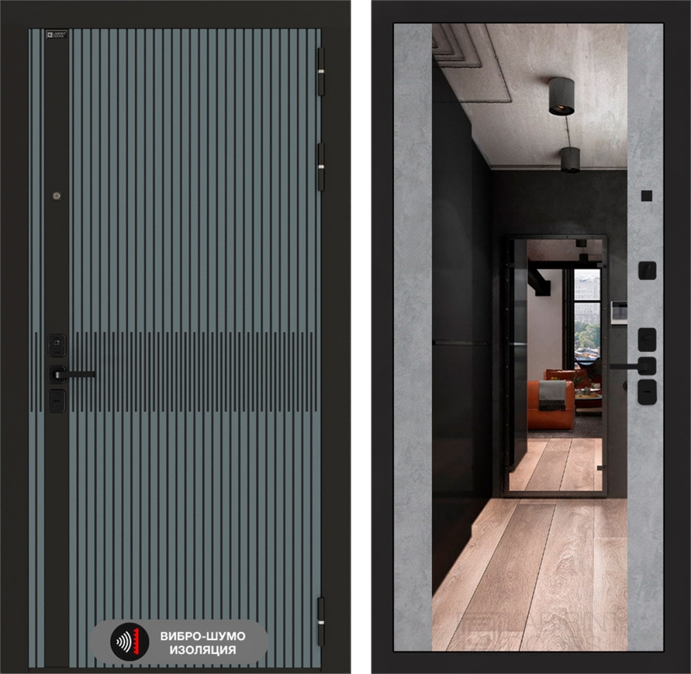 Входная стальная дверь Лабиринт ISSIDA с Зеркалом Максимум - Бетон светлый