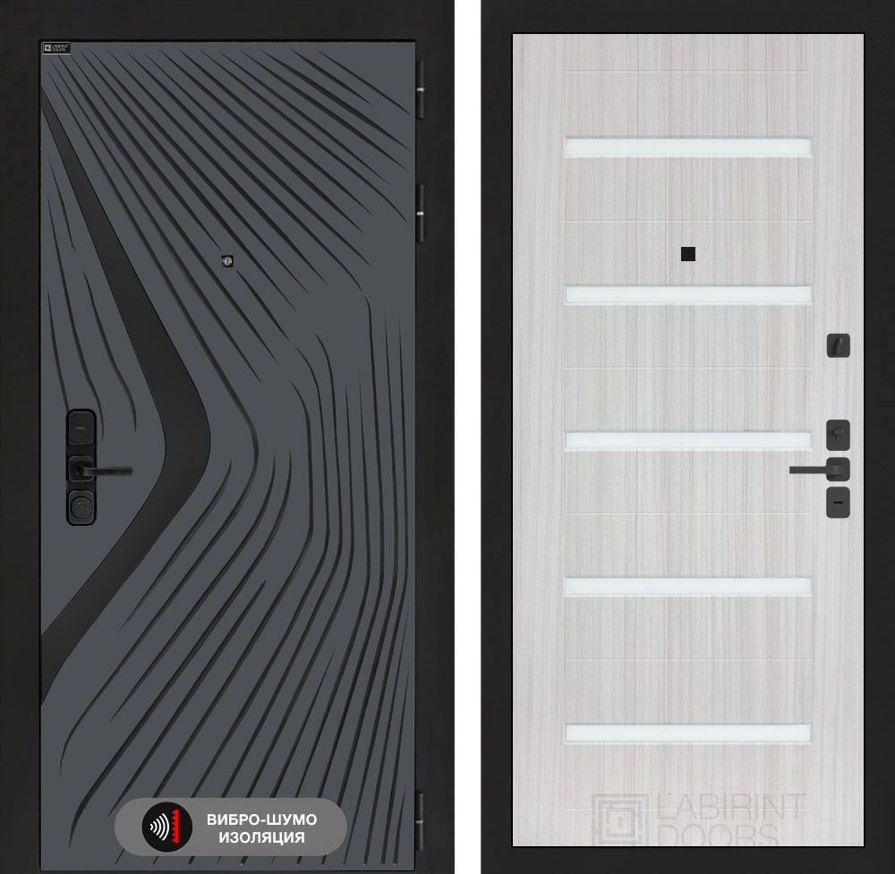 Входная стальная дверь Лабиринт ISSIDA 01 - Сандал белый, стекло белое
