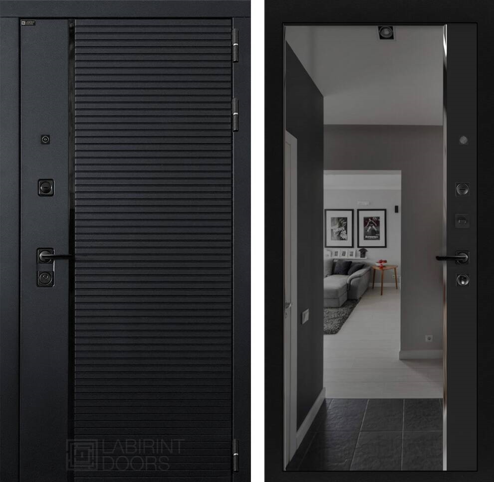 Входная стальная дверь Лабиринт PIANO с зеркалом Панорама с тонировкой - Черный кварц