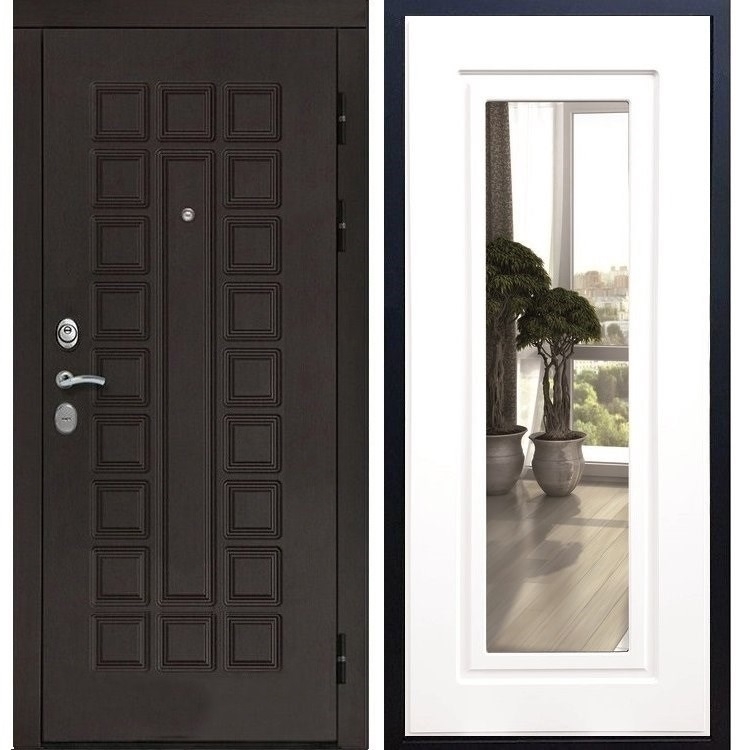Входная стальная дверь Монолит ФЛ-120 с Зеркалом Белый силк сноу