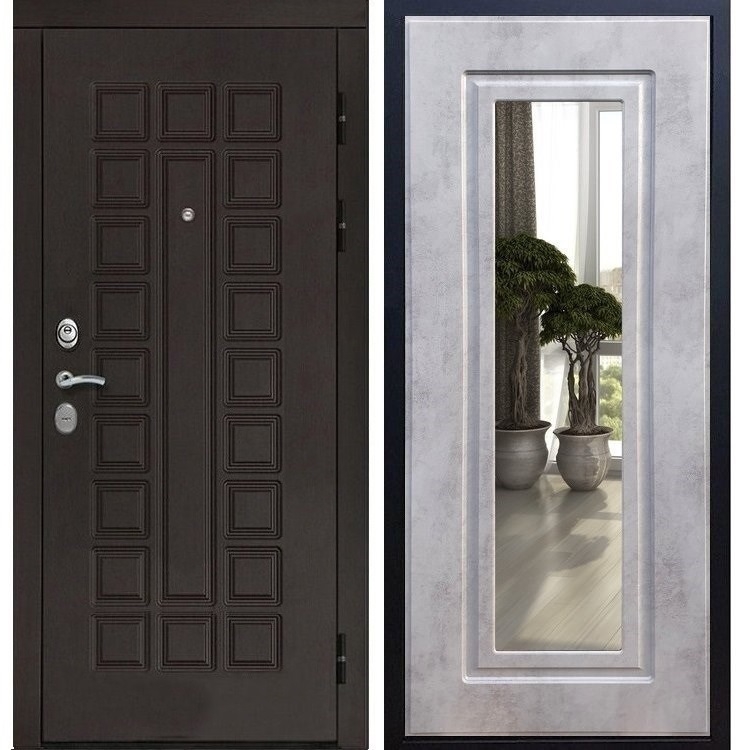 Входная стальная дверь Монолит ФЛ-120 с Зеркалом Бетон темный