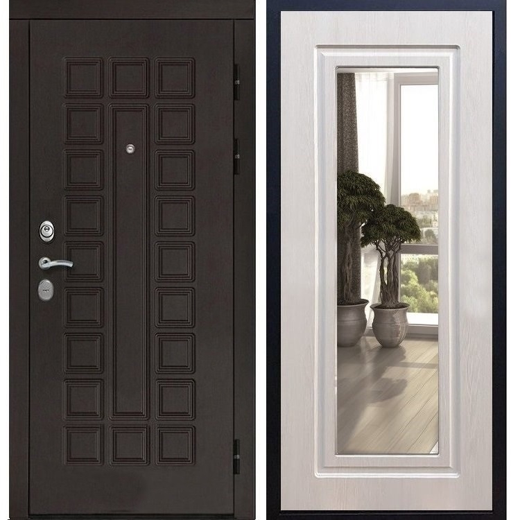 Входная стальная дверь Монолит ФЛ-120 с Зеркалом Лиственница беж