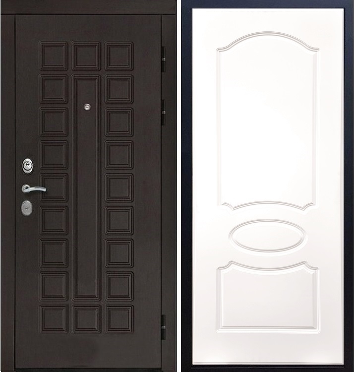 В комплект двери входит - Полотно + короб, декоративная панель с двух сторон, 2 - замка, личинка, ручки, декоративные накладки.