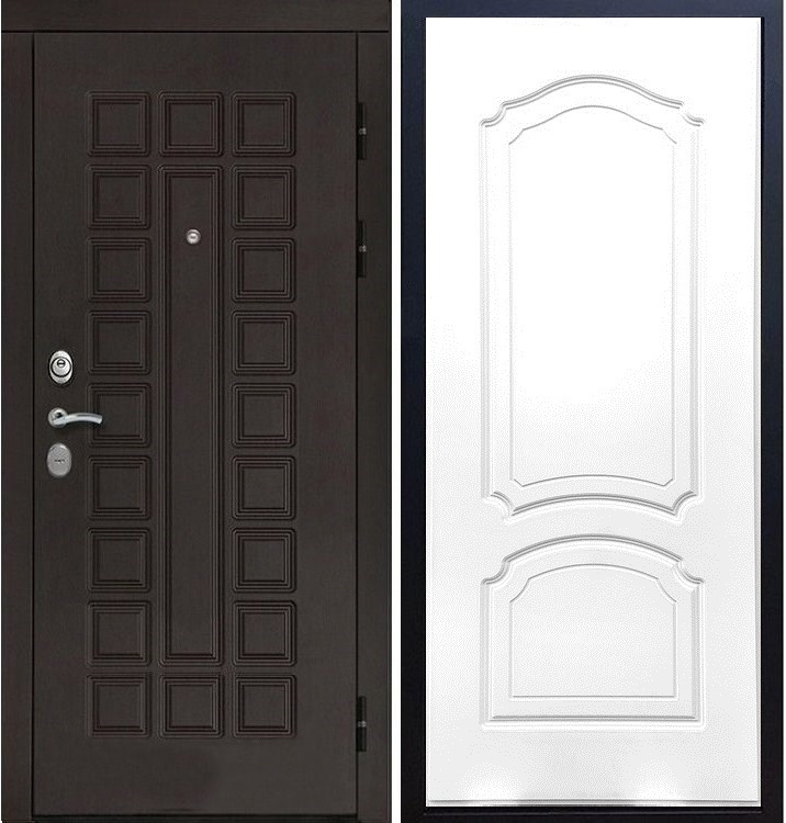 В комплект двери входит - Полотно + короб, декоративная панель с двух сторон, 2 - замка, личинка, ручки, декоративные накладки.