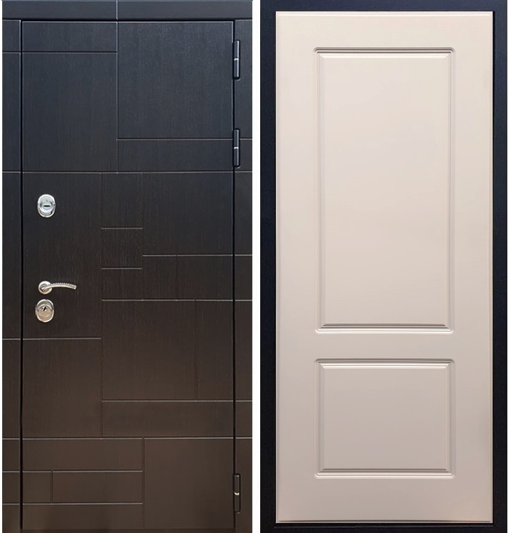 В комплект двери входит - Полотно + короб, декоративная панель с двух сторон, 2 - замка, личинка, ручки, декоративные накладки.