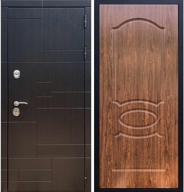 В комплект двери входит - Полотно + короб, декоративная панель с двух сторон, 2 - замка, личинка, ручки, декоративные накладки.