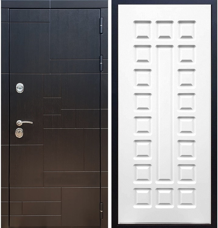 В комплект двери входит - Полотно + короб, декоративная панель с двух сторон, 2 - замка, личинка, ручки, декоративные накладки.
