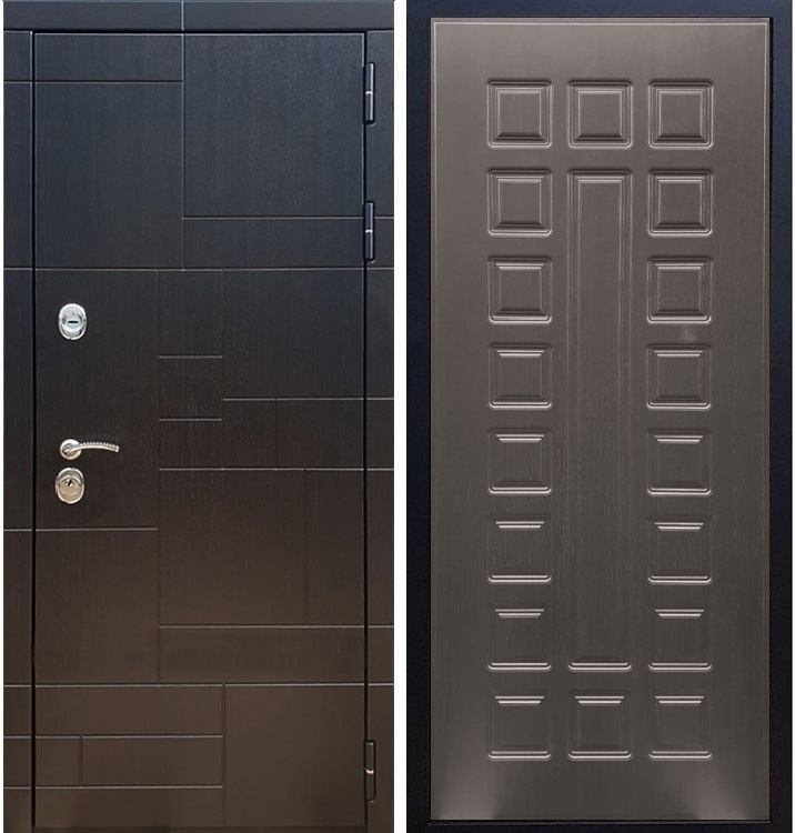 В комплект двери входит - Полотно + короб, декоративная панель с двух сторон, 2 - замка, личинка, ручки, декоративные накладки.