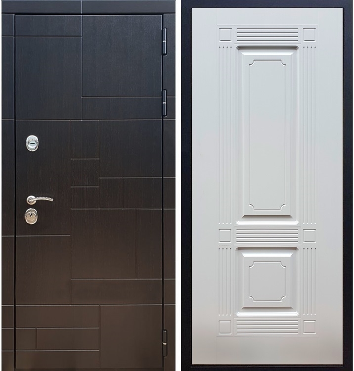 В комплект двери входит - Полотно + короб, декоративная панель с двух сторон, 2 - замка, личинка, ручки, декоративные накладки.