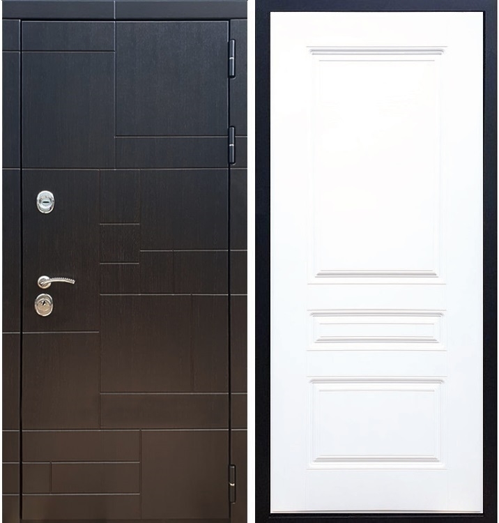 В комплект двери входит - Полотно + короб, декоративная панель с двух сторон, 2 - замка, личинка, ручки, декоративные накладки.