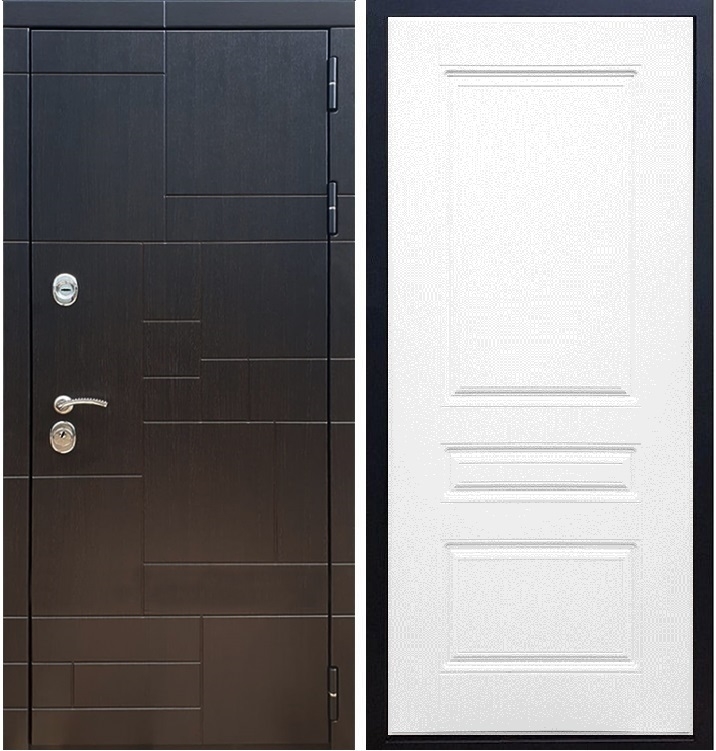 В комплект двери входит - Полотно + короб, декоративная панель с двух сторон, 2 - замка, личинка, ручки, декоративные накладки.