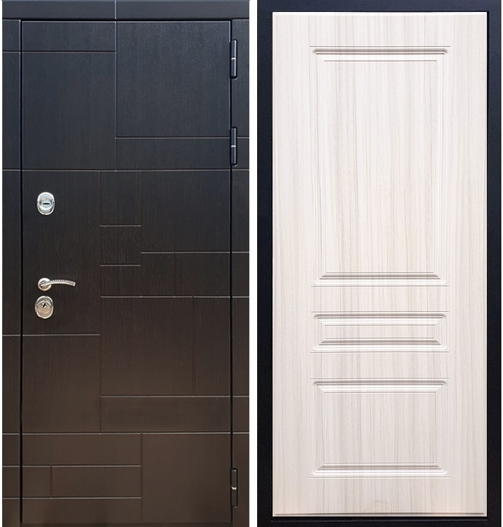 В комплект двери входит - Полотно + короб, декоративная панель с двух сторон, 2 - замка, личинка, ручки, декоративные накладки.