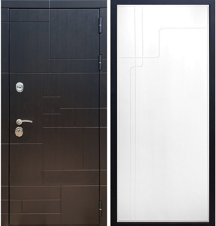 В комплект двери входит - Полотно + короб, декоративная панель с двух сторон, 2 - замка, личинка, ручки, декоративные накладки.
