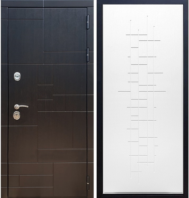 В комплект двери входит - Полотно + короб, декоративная панель с двух сторон, 2 - замка, личинка, ручки, декоративные накладки.