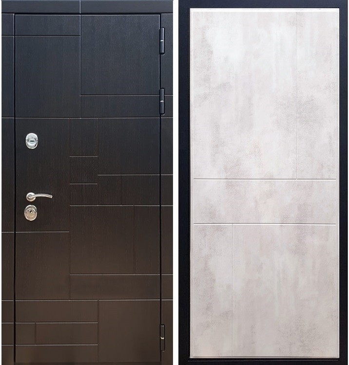 В комплект двери входит - Полотно + короб, декоративная панель с двух сторон, 2 - замка, личинка, ручки, декоративные накладки.