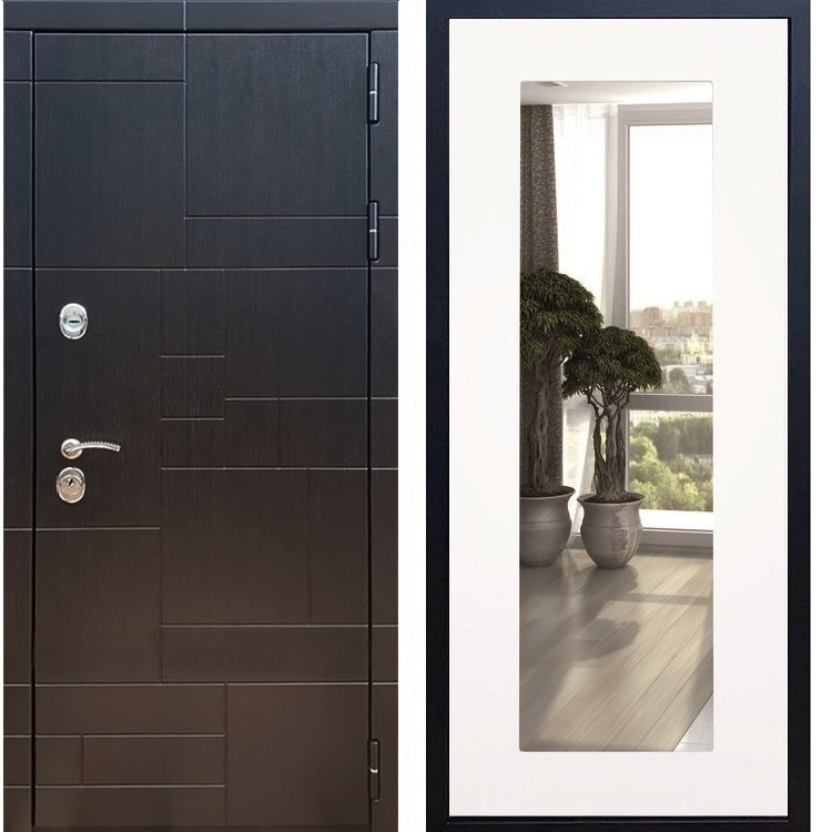 Входная стальная дверь Нова Лабиринт Пастораль Белый силк сноу с Зеркалом