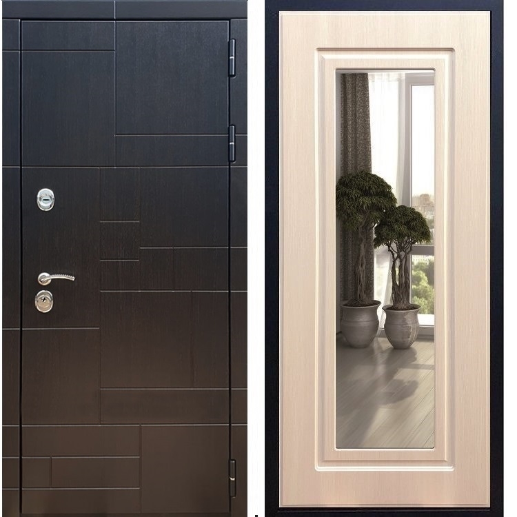 Входная стальная дверь Нова Лабиринт с Зеркалом Беленый дуб