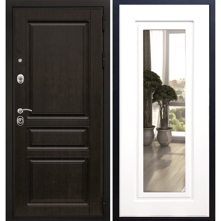 Входная стальная дверь Премиум H ФЛ-120 с Зеркалом Белый силк сноу