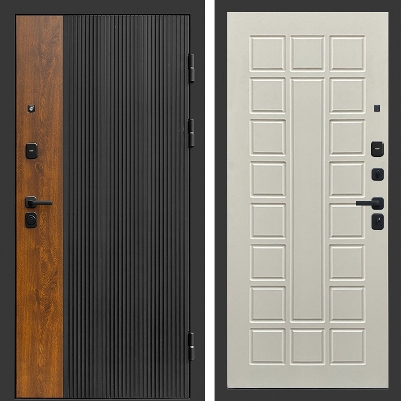 - В комплект двери входит - Полотно + короб, декоративная панель с двух сторон, 2 - замка, ручки, декоративные накладки.