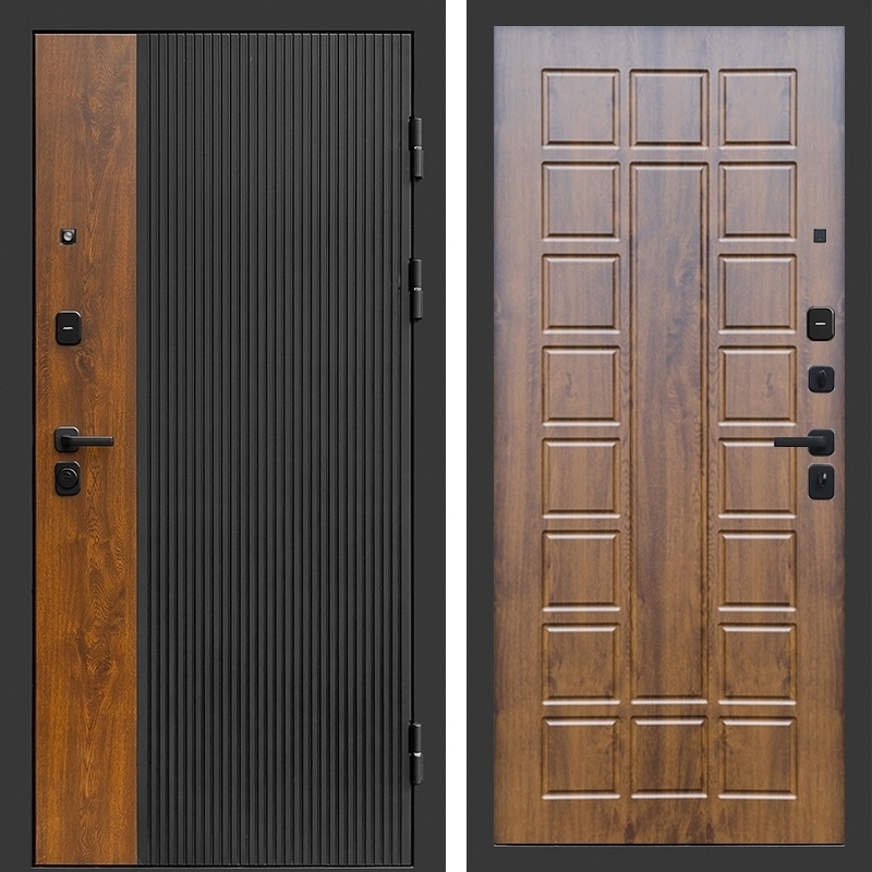 - В комплект двери входит - Полотно + короб, декоративная панель с двух сторон, 2 - замка, ручки, декоративные накладки.