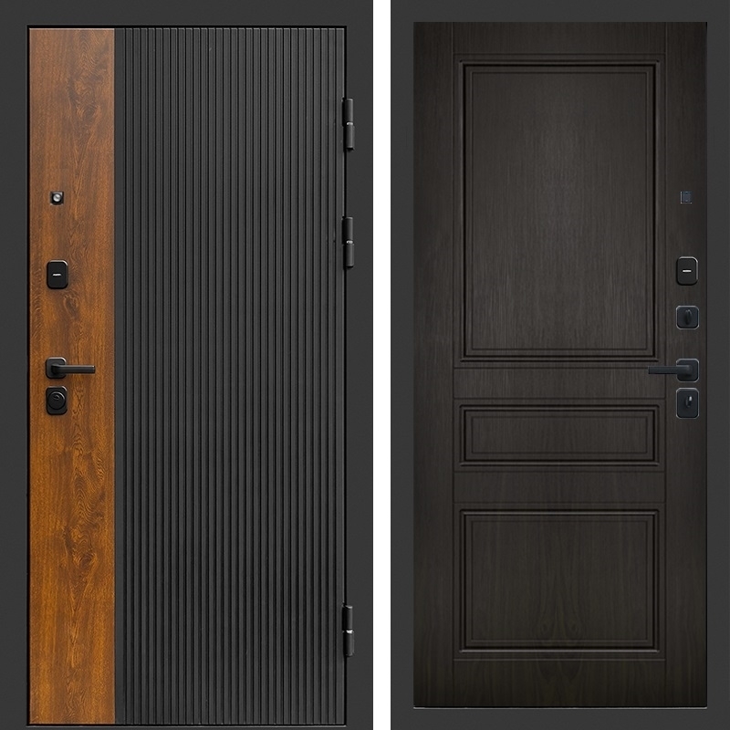 - В комплект двери входит - Полотно + короб, декоративная панель с двух сторон, 2 - замка, ручки, декоративные накладки.