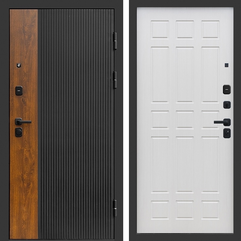 - В комплект двери входит - Полотно + короб, декоративная панель с двух сторон, 2 - замка, ручки, декоративные накладки.