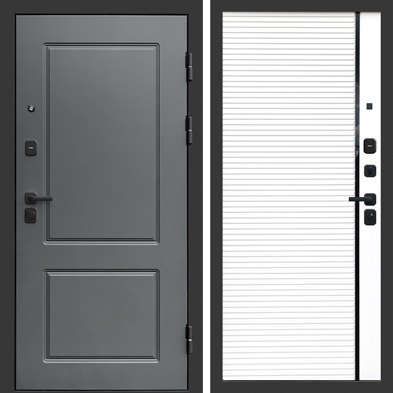 Входная стальная дверь ВЕРОНА фл-248 Белый матовый, черная вставка