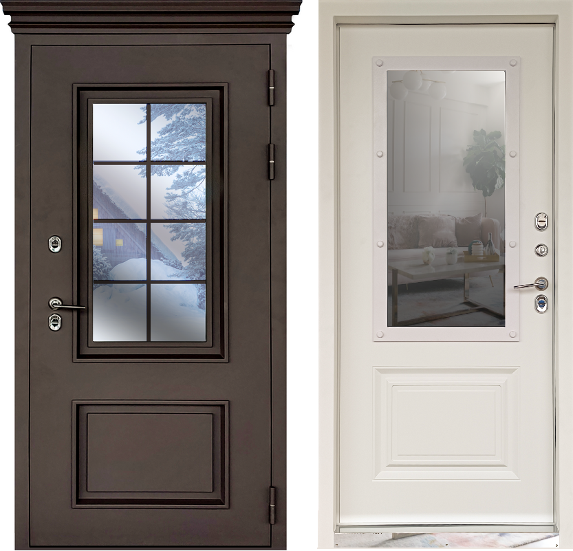 Входные двери Айсберг с терморазрывом с ковкой, стеклопакетом, Эмаль белая